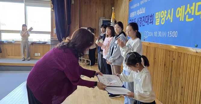 [경남도민뉴스=나희준 기자] 새마을문고 밀양시지부는 30일 밀양시 여성회관에서 새마을관계자와 내빈 60여 명이 참석한 가운데‘대통령기 제44회 국민독서경진 밀양시 예선 대회 시상식’을 개최했다.