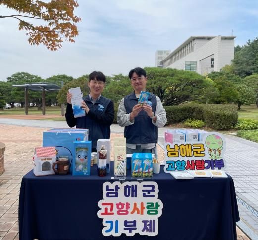 연말정산을 미리 준비하고자 하는 부스 방문자들에게 고향사랑기부제의 기부 방법과 혜택 등을 안내하고 남해군의 마스코트인 ‘해랑이’가 부착된 홍보물을 배포했다.