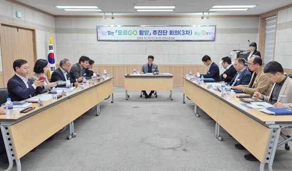 [경남도민뉴스=장광동 기자] 함양군은 10월 30일 오후 군청 소회의실에서 조여문 부군수를 중심으로 담당 국장 및 부서장 등 16여 명이 참석한 가운데 ‘오르고(GO) 함양’ 추진단의 세 번째 회의를 개최해 사업 준비 상황을 점검했다.