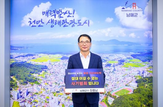 [경남도민뉴스=김부경 기자] 장충남 남해군수는 31일 청소년 사이버 도박 근절을 위한 챌린지에 동참했다. 서울 경찰청 주관으로 올해 3월부터 시작된 이번 챌린지는 최근 급증하는 청소년 대상 불법 사이버 도박의 위험성을 알리고 피해를 예방하기 위해 진행되고 있다.
