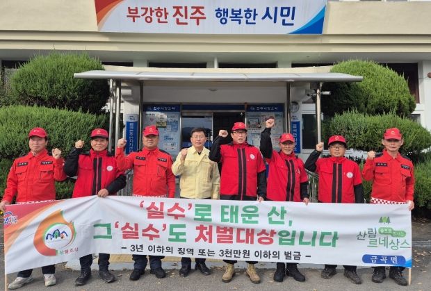 [경남도민뉴스=김종태 기자] 진주시 금곡면사무소는 가을철 산불조심 기간을 맞아 11월 1일 산불진화대원 발대식을 시작으로 2025년 5월 15일까지 산불예방 집중기간을 운영하며 산불예방에 총력을 기울일 계획이다.