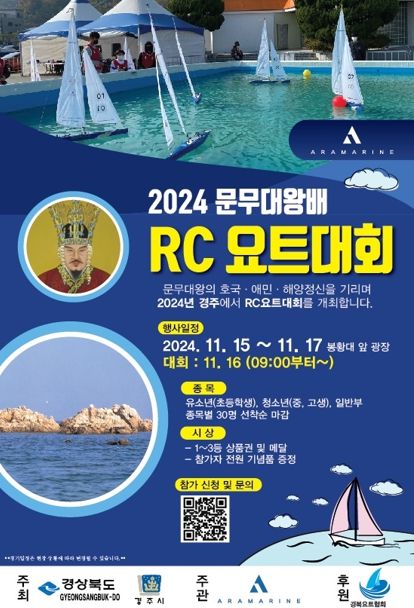 [경남도민뉴스=이돈휘 기자] 경주시는 오는 15일부터 17일까지 봉황대 앞 광장에서 ‘2024 문무대왕배 RC(무선조종) 요트대회’를 개최한다고 3일 밝혔다.