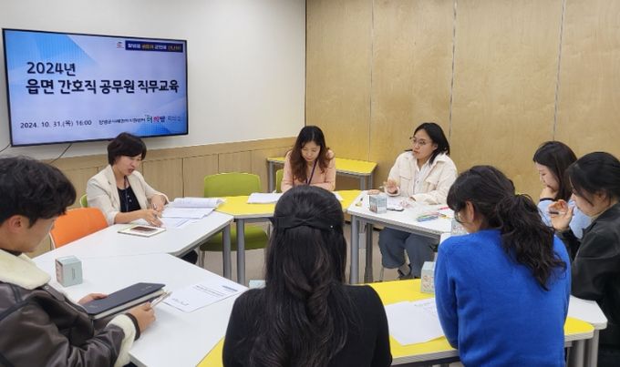 이날 교육에는 읍면 간호직 공무원 7명이 참석해 ▲간호직 공무원의 주요 역할 ▲주민 건강 상태 파악 및 건강사례관리 ▲복지건강 통합서비스 제공 등 다양한 업무에 대한 이해를 높이고, 복지건강 기능 강화 활성화 방안을 논의하며 소통의 시간을 가졌다.