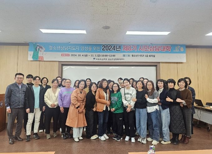 최연선 아동청소년과장은 “제8기 시민상담대학 강의를 통해 청소년들의 다양한 심리적, 사회적 문제에 대해 더 깊이 이해하는 상담전문가로 거듭나길 바란다”라며 “앞으로도 청소년의 건강한 성장을 위한 따뜻한 조력자가 되어주시길 기대한다”고 말했다.