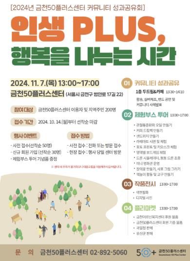 행사 참여 희망자는 금천50플러스센터로 사전 접수하거나, 행사 당일 현장에서 접수하면 된다.