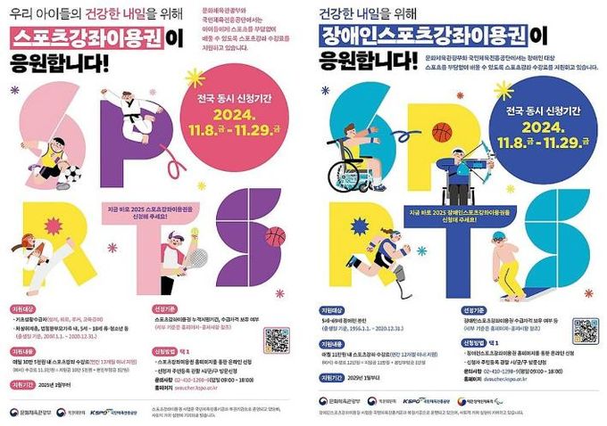 대상자로 선정되면 2025년 한 해 동안 스포츠강좌 이용권 전용카드로 매월 수강료를 지원받게 된다.
