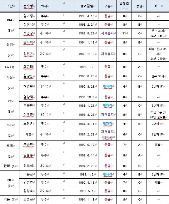 한편, 5일 공시된 2025 FA 승인 선수는 11월 6일(수)부터 해외 구단을 포함한 모든 구단과 계약을 체결할 수 있다.