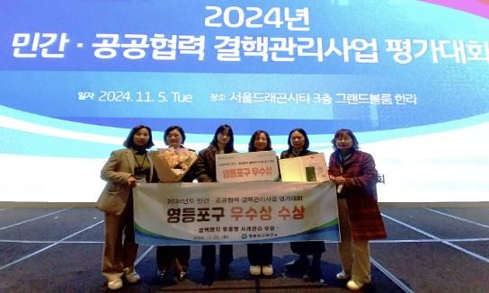 [경남도민뉴스=윤장희 기자] 영등포구가 5일, 서울드레곤시티에서 개최된 질병관리청 주관 ‘2024년 민간‧공공협력 결핵관리사업 평가대회’에서 ‘결핵환자 맞춤형 사례관리’ 부문 ‘우수 자치구’로 선정되는 영예를 안았다고 밝혔다.