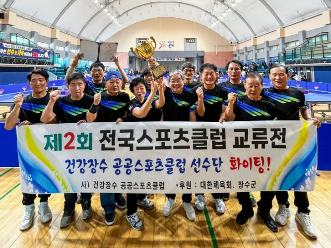 건강장수공공스포츠클럽은 이번 대회에 축구(초등취미반), 탁구(시니어단체 2팀)등 2개 종목에 30여 명이 출전했고, 탁구 단체전(시니어부)에서 우승 트로피를 들어 올렸다.