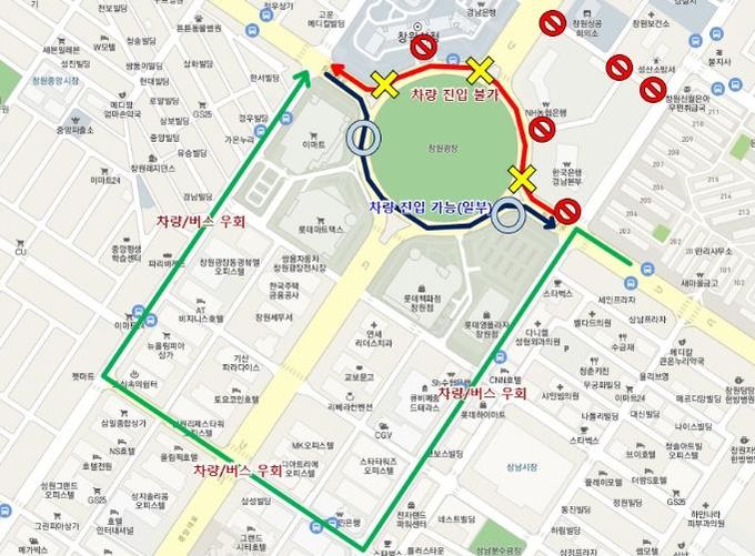 당일 오전 6시부터 대회 준비를 위한 각종 시설물 설치에 따라 대회가 종료되는 오전 10시까지 경남도청~창원광장 인근에 교통통제가 이루어질 예정이다.