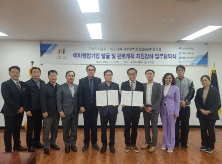 [경남도민뉴스=이돈휘 기자] 구미도시공사는 지난 5일 대구·경북 서부권역 창업보육센터협의회(경운대학교창업보육센터, 구미대학교창업보육센터, 국립금오공과대학교창업보육센터, (재)여성기업종합지원센터경북센터)와 「창업기업 발굴 및 판로개척 지원사업」 업무협약을 체결했다.
