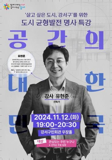 [경남도민뉴스=윤장희 기자] 서울 강서구는 오는 12일 도시 균형발전 명사 특강 '공간의 대한민국'을 개최한다고 밝혔다.