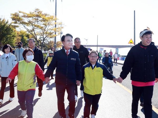 이날 걷기대회는 무지개빛 해안도로를 따라 거북선마을 해안공원에서 출발해 금문해안교 인근을 왕복하는 약 2.6km 구간의 코스로 진행됐다.