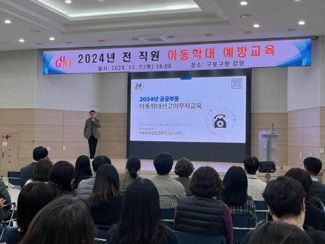 [경남도민뉴스=윤장희 기자] 구로구가 11월 19일 세계아동학대 예방의 날을 맞아 7일 구청 강당에서 ‘2024년 아동학대 예방교육’을 실시했다고 밝혔다.