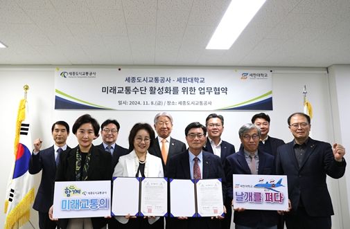 [경남도민뉴스=도문호 기자] 세종도시교통공사는 지난 8일 공사 회의실에서 세한대학교와 도심항공모빌리티(UAM)을 포함한 미래항공교통 발전을 위한 업무협약을 체결했다.