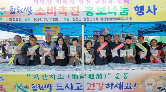 [경남도민뉴스=김춘호 기자] 합천군은 11일 합천농협 하나로마트 앞에서 합천농협과 (사)한국여성농업인 합천군연합회가 주최주관하는 “합천 쌀 애용 소비촉진 홍보 나눔 행사”를 펼쳤다.