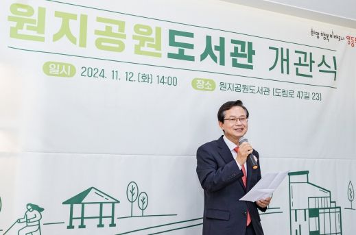 [경남도민뉴스=윤장희 기자] 최호권 영등포구청장이 11월 12일 오후, 대림3동에 위치한 ‘원지공원도서관’ 개관식에 참석해 도서관의 새 출발을 축하하고 있다.