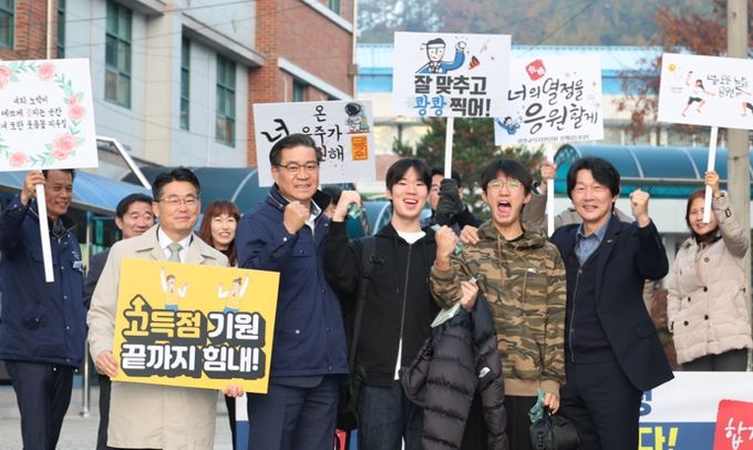 진병영 군수는 추운 날씨와 긴장감 속에 시험을 치르는 수험생들에게 따뜻한 격려와 응원의 메시지를 전달하고 용기를 북돋아 주었으며, “열심히 준비한 실력을 유감없이 발휘해 좋은 결과를 거두길 바란다.”며 격려를 아끼지 않았다.