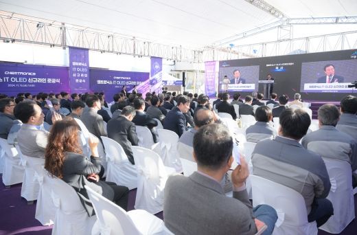 켐트로닉스 신규공장은 삼성디스플레이에서 선공정을 마친 아이티(IT)용 8세대 오엘이디(OLED)를 얇게 깎아내는 후공정 사업장으로, 연면적 2만 743㎡, 4층 규모로 준공됐다.