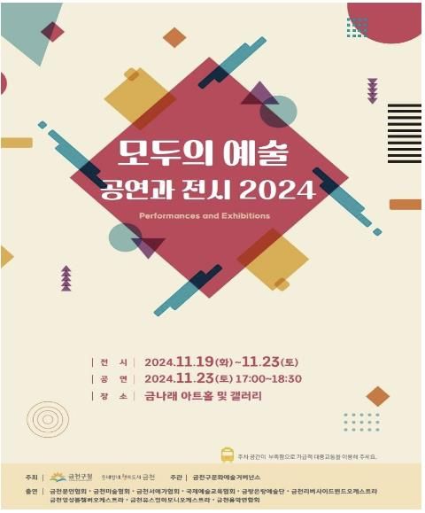 전시와 공연이 함께 열려 주민들이 다양한 문화행사를 즐길 수 있다. 전시는 19일부터 23일까지 금나래갤러리에서 열리며, 공연은 11월 23일 오후 5시부터 6시 30분까지 금나래아트홀에서 진행된다.