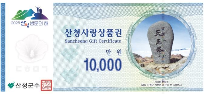 강영숙 산청군 경제교통과장은 “2025 산청방문의 해를 널리 알리기 위해 해마다 발행하는 지류 상품권에 방문의 해 홍보 마크를 넣었다”며 “앞으로도 상품권 운영 관리와 만전을 기하겠다”고 말했다.
