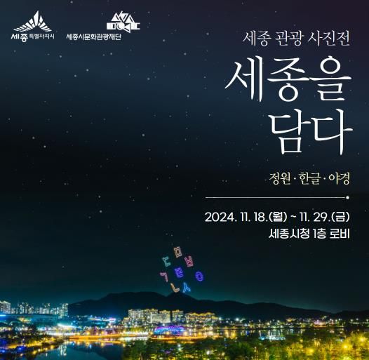 [경남도민뉴스=도문호 기자] 세종시문화관광재단은 오는 18일부터 29일까지 12일간 세종시청 1층 로비에서 세종 관광 사진전 '세종을 담다'를 개최한다.
