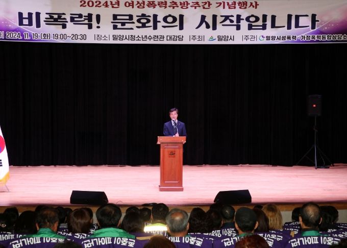 [경남도민뉴스=나희준 기자] 밀양시성폭력·가정폭력통합상담소는 지난 19일 밀양시청소년수련관 대강당에서 여성폭력 추방주간을 기념해 개최된‘비폭력! 문화의 시작입니다’행사를 성황리에 마쳤다고 밝혔다.