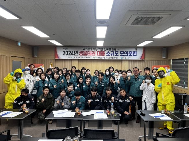 [경남도민뉴스=김춘호 기자] 합천군(군수 김윤철)은 20일 보건소 보건교육실에서 합천소방서, 합천경찰서, 5870부대 4대대 등 유관기관 관계자 50여 명이 참여한 가운데 생물테러 대비·대응 모의훈련을 실시했다.