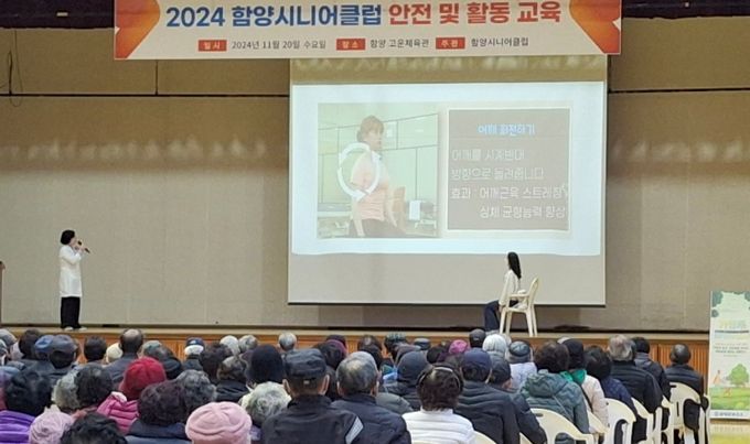[경남도민뉴스=장광동 기자] 함양군보건소는 11월 20일 고운체육관에서 함양시니어클럽 노인일자리 참여자 670여 명을 대상으로 치매예방 및 건강생활 실천, 낙상예방 교육 등을 실시했다.