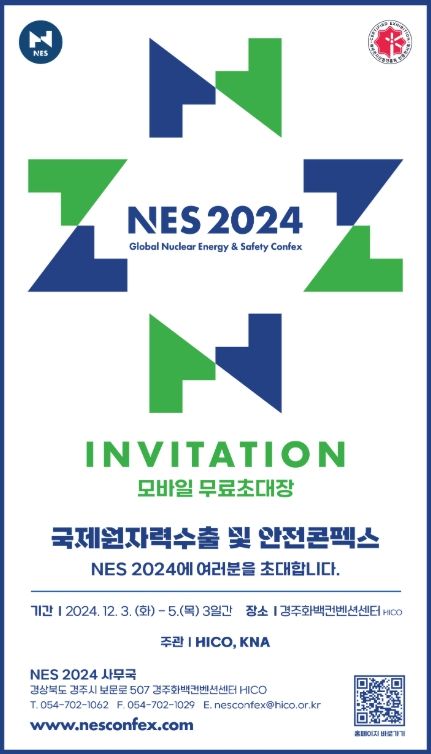 [경남도민뉴스=이돈휘 기자] 국내 유일 원전 수출 및 안전 전문 국제전시회인 ‘NES 2024’가 오는 12월 3일 화요일부터 5일 목요일까지 경주화백컨벤션센터와 한국원전수출산업협회 공동주관으로 개최된다.