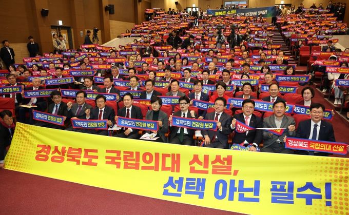 참석자들은 ‘경상북도 국립의대 신설'과 ‘경북도민 건강권 보장' 구호가 담긴 손 플래카드를 펼치면서 정부가 적극 나설 것을 촉구했다.