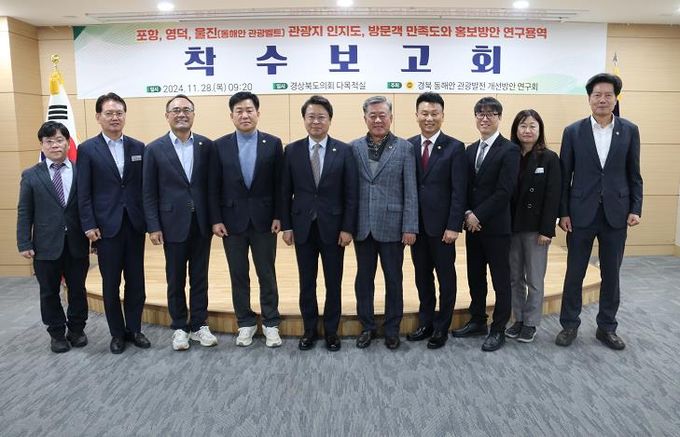 [경남도민뉴스=이돈휘 기자] 경북도의회 '경북 동해안 관광발전 개선방안 연구회'는 28일 9시20분 도의회 다목적실에서 “포항, 영덕, 울진(동해안 관광벨트) 관광지 인지도, 방문객 만족도와 홍보방안” 연구용역 착수보고회를 개최했다.
