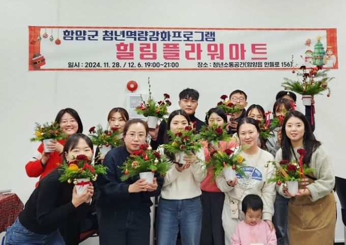이번 힐링플라워아트 프로그램은 함양군 청년정책네트워크에서 청년들의 역량강화를 위해 기획·운영하는 청년역량강화 프로그램 중 하나로, 크리스마스 센터피스 만들기를 통해 식물을 활용한 정서적 안정감을 제공하고 청년 간 네트워크 활성화를 위해 마련됐다.