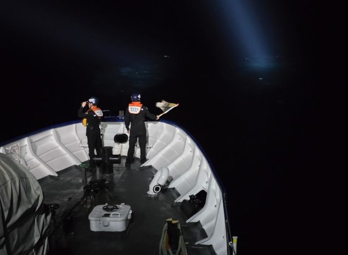 울진해경 경비함정 308함이 현장에 가장 먼저 도착해 탐조등, 야간 감시카메라 등 장비를 이용해 수색 중에 있으며, 항공세력(헬기)도 도착해 수색에 합류하는 등 가용 장비 및 인력을 총 동원해 현재 수색중이다.