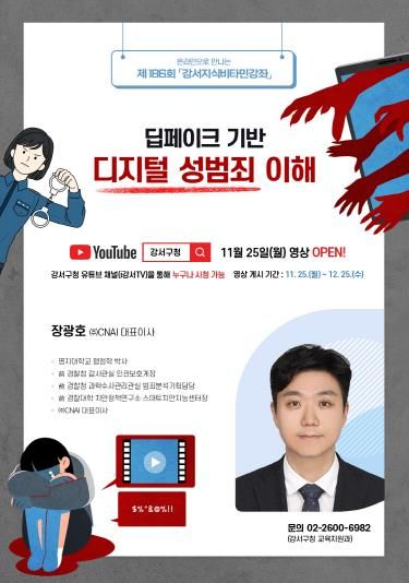강사로 나선 장광호 ㈜CNAI 대표이사는 최근 우리 사회에서 큰 경각심을 불러일으키고 있는 딥페이크 기술을 이용한 디지털 성범죄의 개념과 대응 방안에 대해 자세히 전달할 예정이다.
