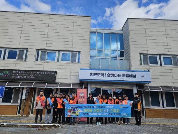 [경남도민뉴스=최인태 기자] 해남소방서는 지난 달 19일 해남군 버스터미널에서 우체국 주변으로 전남 22개 소방서 전체가 동시에 참여하는 ‘5인승 이상 차량, 차량용 소화기 의무 비치’ 집중 홍보 캠페인을 실시하였다고 밝혔다.