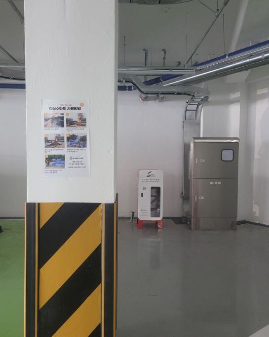 [경남도민뉴스=김채연 기자] 부산 동구는 전기자동차 화재 발생 시 신속한 초기대응을 위하여 공영주차장 실내에 설치된 전기차 충전 구역 1개소(범일1동 제 4공영주차장)에 질식소화포를 설치했다.
