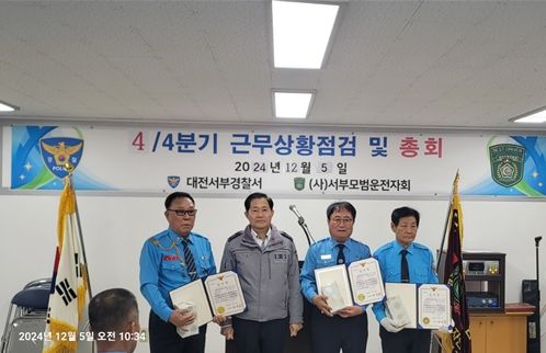 [경남도민뉴스=도문호 기자] 대전서부경찰서는 2024. 12. 5. 10:30 서구 변동소재 서부모범운전자회 사무실에서 100여명이 참석한 가운데 교통사고 예방을 위한 상호협력 간담회 및 근무상황 점검을 실시했다.