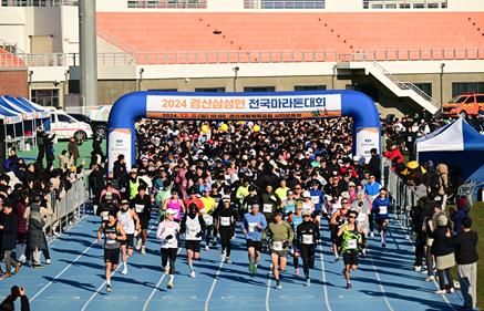 [경남도민뉴스=최민숙 기자] 경산시는 지난 8일 경산시민운동장에서 전국 마라톤 동호인 950여 명이 참가한 ‘2024 경산 삼성현 전국 마라톤대회’를 개최했다.