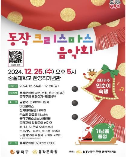 [경남도민뉴스=윤장희 기자] 동작구가 오는 25일 숭실대학교 한경직기념관에서 ‘동작 크리스마스 음악회’를 개최한다고 밝혔다.