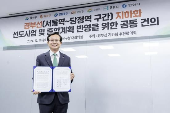 이날 오후 4시에 개최된 ‘경부선 지하화 추진협의회 회의’는 영등포구를 비롯해 6개 지방자치단체(용산구, 구로구, 금천구, 동작구, 안양시, 군포시)가 함께 했다. 이번 회의에서 서명된 공동 건의문은 국토교통부로 전달될 예정이다.