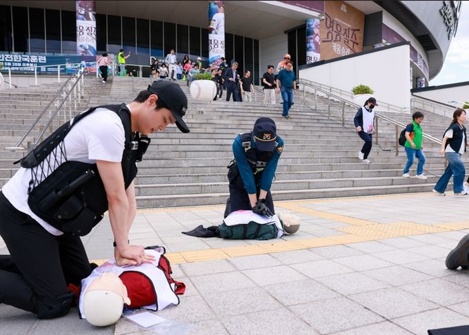 구는 지난 5월 고척스카이돔에서 구청을 비롯한 15개 유관기관, 단체, 구민 등 약 430여명이 참석한 가운데 야구 경기 중 태풍으로 인해 경기장이 무너지고 대형 화재가 발생하는 상황에 대응하는 훈련을 펼쳤다.
