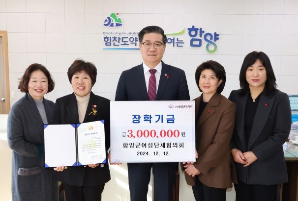 [경남도민뉴스=장광동 기자] 함양군은 12월 12일, 함양군여성단체협의회가 지역 학생들을 위한 장학금 300만 원을 기탁하며 훈훈한 연말 분위기를 더했다고 밝혔다.
