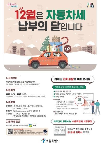 [경남도민뉴스=윤장희 기자] 구로구가 이달 16일부터 31일까지 12월 자동차세 납부의 달을 맞이해 안내에 나섰다.