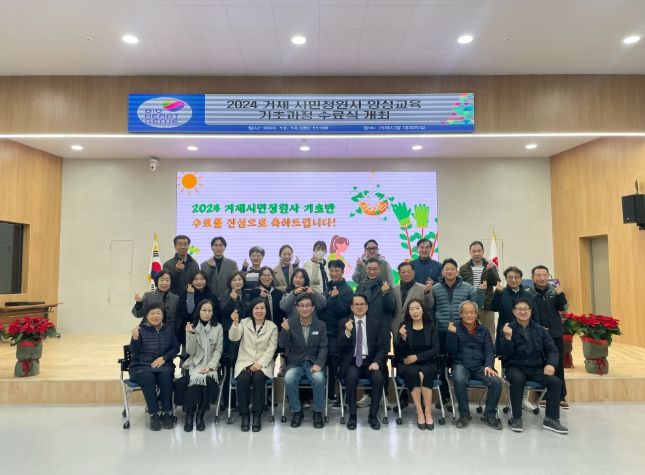 [경남도민뉴스=김부경 기자] 거제시는 지난 14일 거제시청 대회의실에서 시민정원사 양성교육 위탁교육 기관과 시 관계자가 참석한 가운데 ‘2024년 제2기 시민정원사 기초과정 양성교육 수료식’을 개최했다.