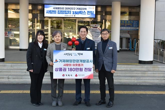 [경남도민뉴스=김부경 기자] 거제해양관광개발공사에서는 지난 16일 거제시청을 방문해 복지사각지대에 있는 취약계층을 위해 거제사랑상품권 180만원을 전달했다.
