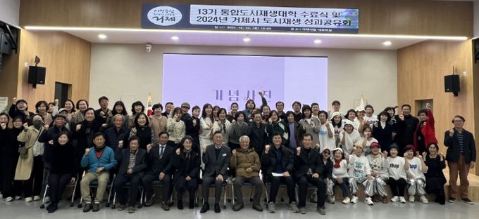 [경남도민뉴스=김부경 기자] 거제시도시재생지원센터는 지난 10일 거제시청 대회의실에서 ‘제13기 통합도시재생대학 수료식 및 성과공유회’를 열었다. 수료생을 비롯하여 도시재생 관계자, 주민 등 약 120여 명이 참석했다.