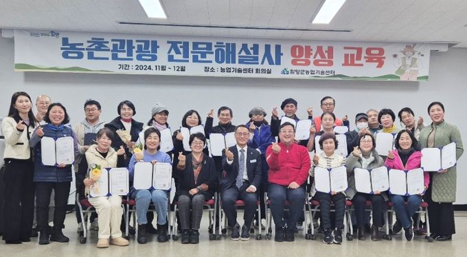 [경남도민뉴스=장광동 기자] 함양군은 지난 12월 17일 농업기술센터 1층 회의실에서 농촌관광 전문해설사 양성 교육 수료식을 개최했다고 밝혔다.