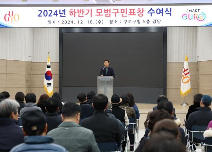 [경남도민뉴스=윤장희 기자] 구로구가 18일 구청 강당에서 ‘2024년 하반기 모범구민 표창 수여식’을 개최했다.