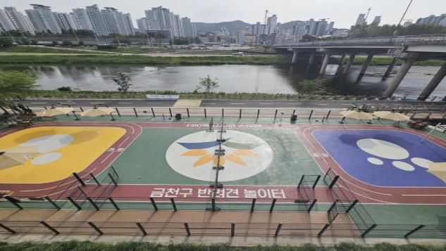 반려견놀이터는 지난 5월 안양천 유휴공간(시흥동 784-21)에 757㎡(229평) 규모로 조성됐다. 반려견들이 자유롭게 뛰어놀 수 있는 놀이 공간과 반려인 쉼터 등의 시설을 갖추고 있다.